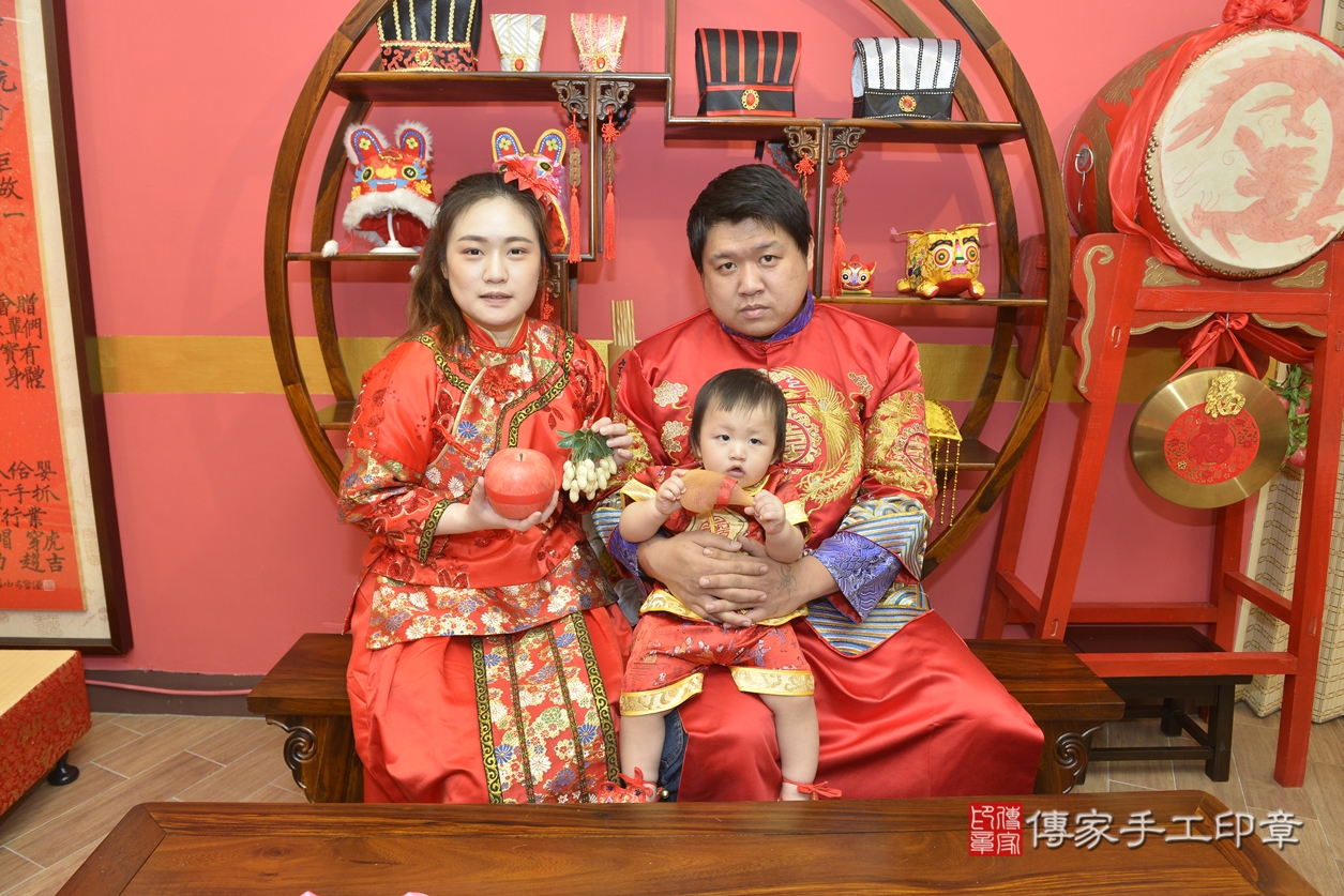 新北市永和區吳寶寶抓周推薦:傳家新北店抓周度脺中國風會場,嬰兒古禮抓周流程儀式吉祥話、抓周道具物品24種、拍照。抓周證書。2022.02.18