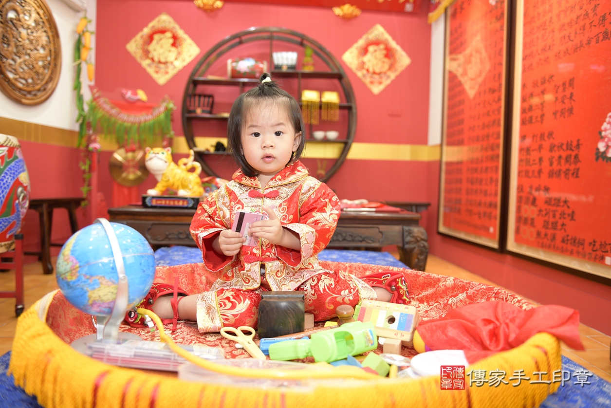 桃園市八德區郭寶寶抓周推薦:傳家桃園店抓周度脺中國風會場,嬰兒古禮抓周流程儀式吉祥話、抓周道具物品24種、拍照。抓周證書。2021.10.12