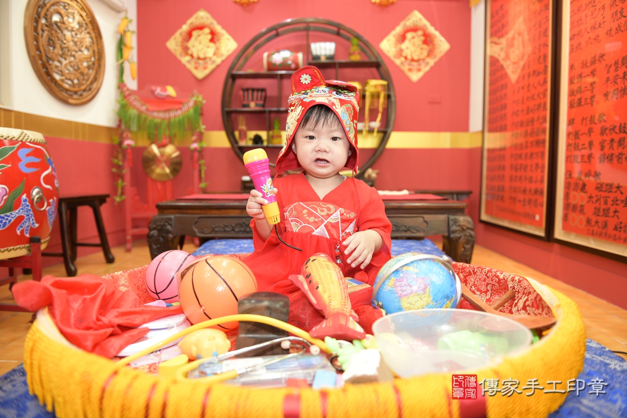 桃園市八德區陳寶寶抓周推薦:傳家桃園店抓周度脺中國風會場,嬰兒古禮抓周流程儀式吉祥話、抓周道具物品24種、拍照。抓周證書。2021.08.09