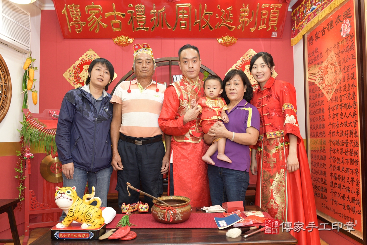 桃園市八德區呂寶寶抓周推薦:傳家桃園店抓周度脺中國風會場,嬰兒古禮抓周流程儀式吉祥話、抓周道具物品24種、拍照。抓周證書。2021.09.04