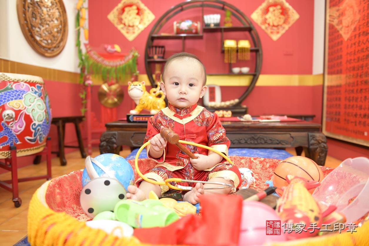 桃園市八德區呂寶寶抓周推薦:傳家桃園店抓周度脺中國風會場,嬰兒古禮抓周流程儀式吉祥話、抓周道具物品24種、拍照。抓周證書。2021.10.08
