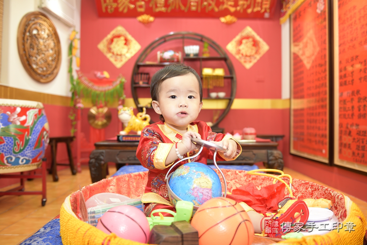 桃園市八德區姜寶寶抓周推薦:傳家桃園店抓周度脺中國風會場,嬰兒古禮抓周流程儀式吉祥話、抓周道具物品24種、拍照。抓周證書。2021.10.13