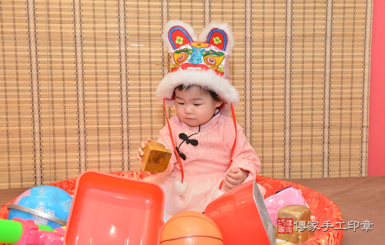 新竹市香山區陳寶寶抓周推薦:傳家新竹店抓周度脺中國風會場,嬰兒古禮抓周流程儀式吉祥話、抓周道具物品24種、拍照。抓周證書。2022.03.18