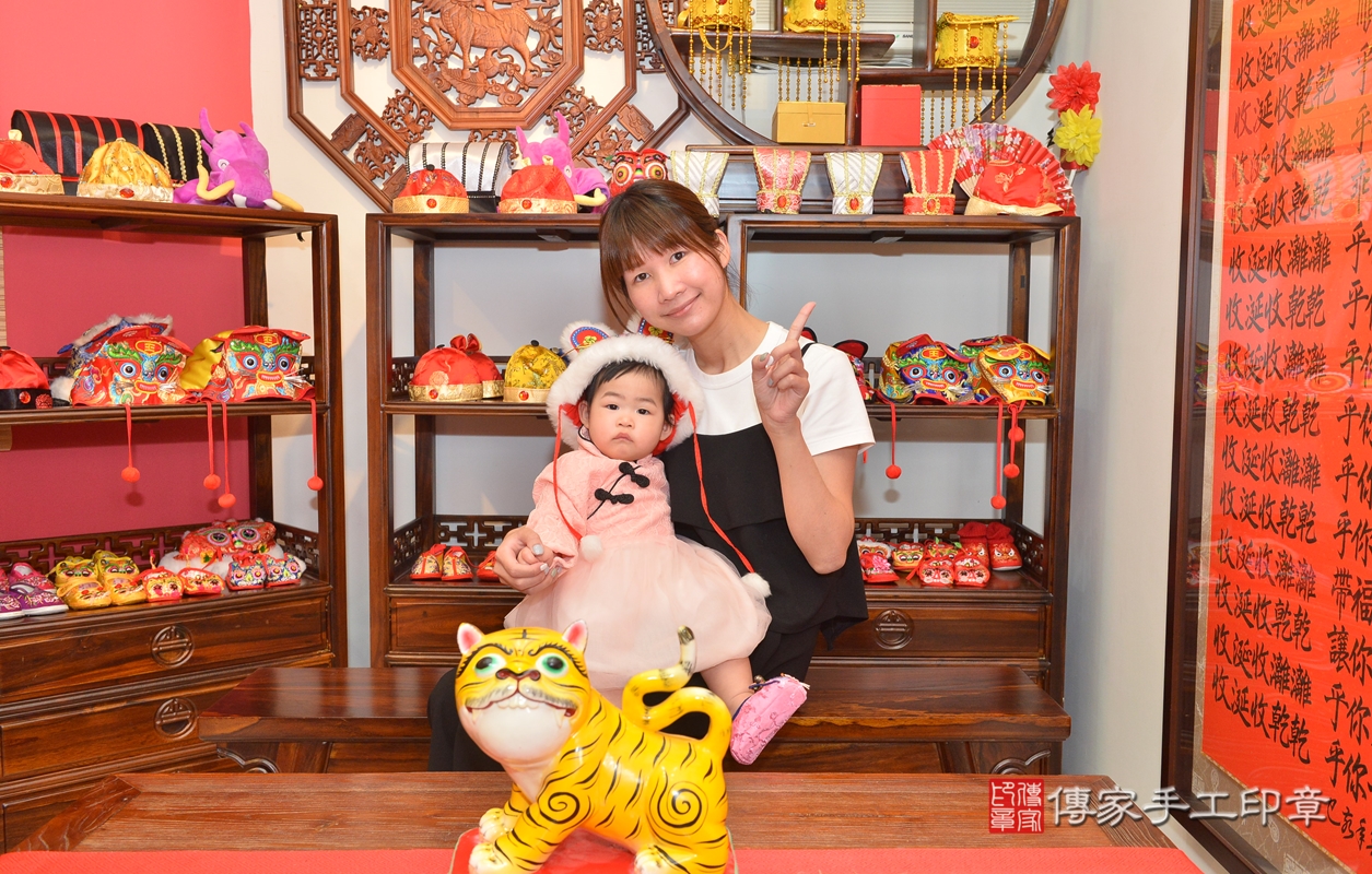 新竹市香山區陳寶寶古禮抓周【穿抓周虎衣、帶抓周虎帽、穿抓周虎鞋】:滿週歲趨吉避凶的吉祥衣服穿戴。新竹店抓周。