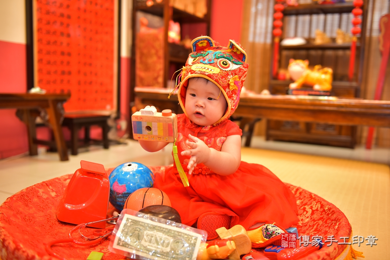 高雄市鳳山區朱寶寶抓周推薦:傳家高雄店抓周度脺中國風會場,嬰兒古禮抓周流程儀式吉祥話、抓周道具物品24種、拍照。抓周證書。2022.03.19