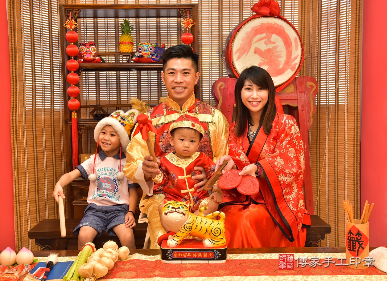 呂寶寶古禮抓周【穿抓周虎衣、帶抓周虎帽、穿抓周虎鞋】:滿週歲趨吉避凶的吉祥衣服穿戴。高雄店抓周。