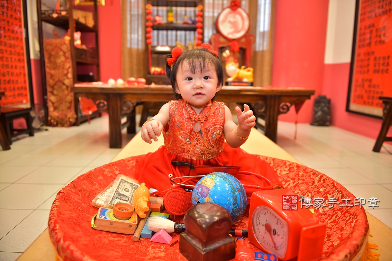 高雄市鳳山區董寶寶抓周推薦:傳家高雄店抓周度脺中國風會場,嬰兒古禮抓周流程儀式吉祥話、抓周道具物品24種、拍照。抓周證書。2022.03.05