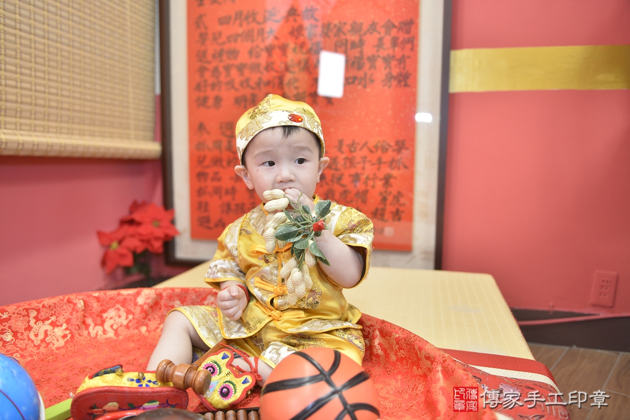新北市永和區劉寶寶抓周推薦:傳家新北店抓周度脺中國風會場,嬰兒古禮抓周流程儀式吉祥話、抓周道具物品24種、拍照。抓周證書。2022.06.12