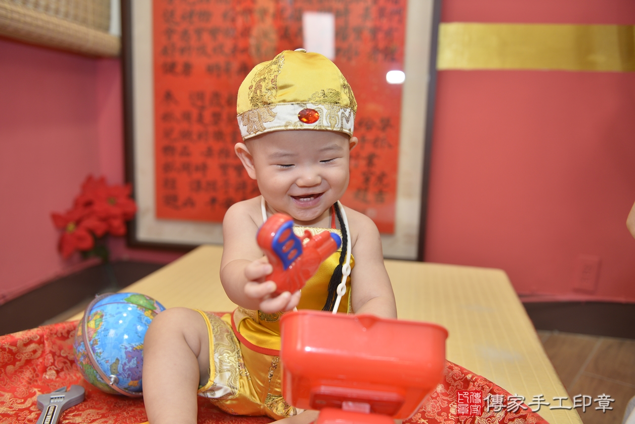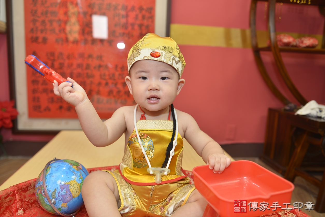 新北市永和區吳寶寶抓周推薦:傳家新北店抓周度脺中國風會場,嬰兒古禮抓周流程儀式吉祥話、抓周道具物品24種、拍照。抓周證書。2022.07.24