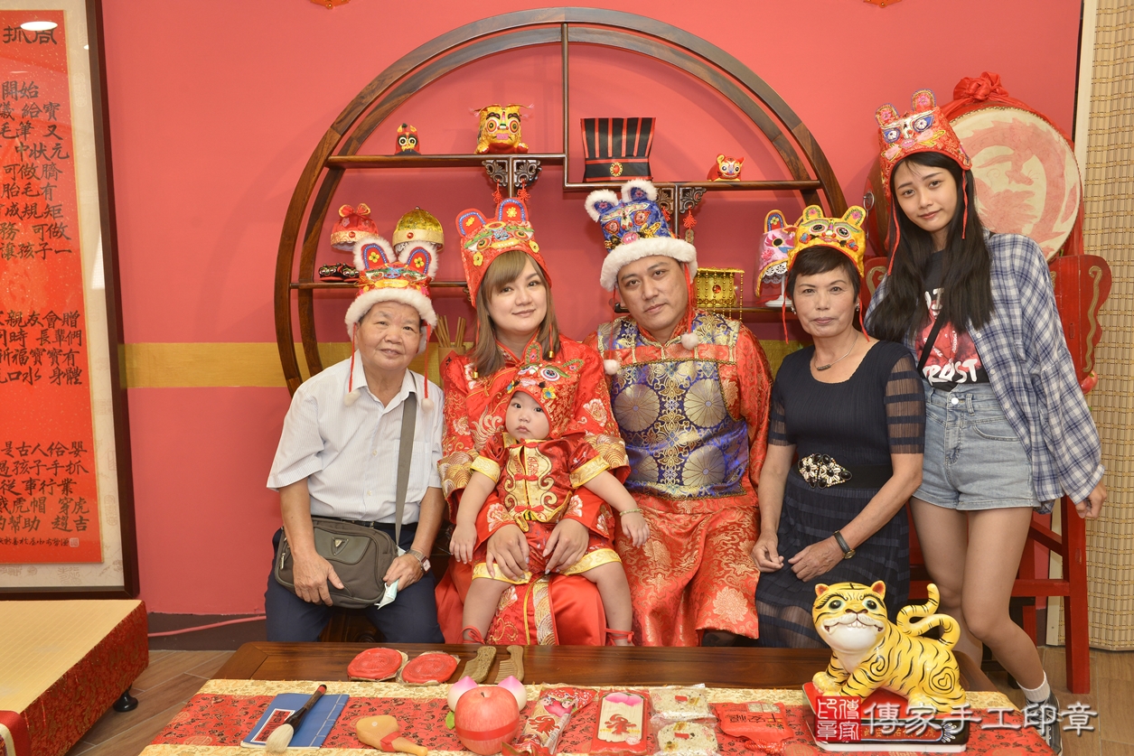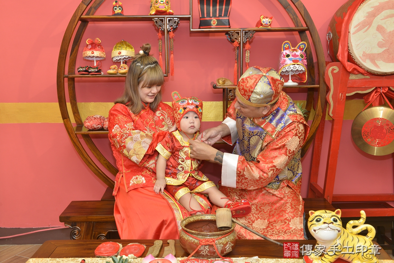 新北市永和區童寶寶抓周推薦:傳家新北店抓周度脺中國風會場,嬰兒古禮抓周流程儀式吉祥話、抓周道具物品24種、拍照。抓周證書。2022.07.27