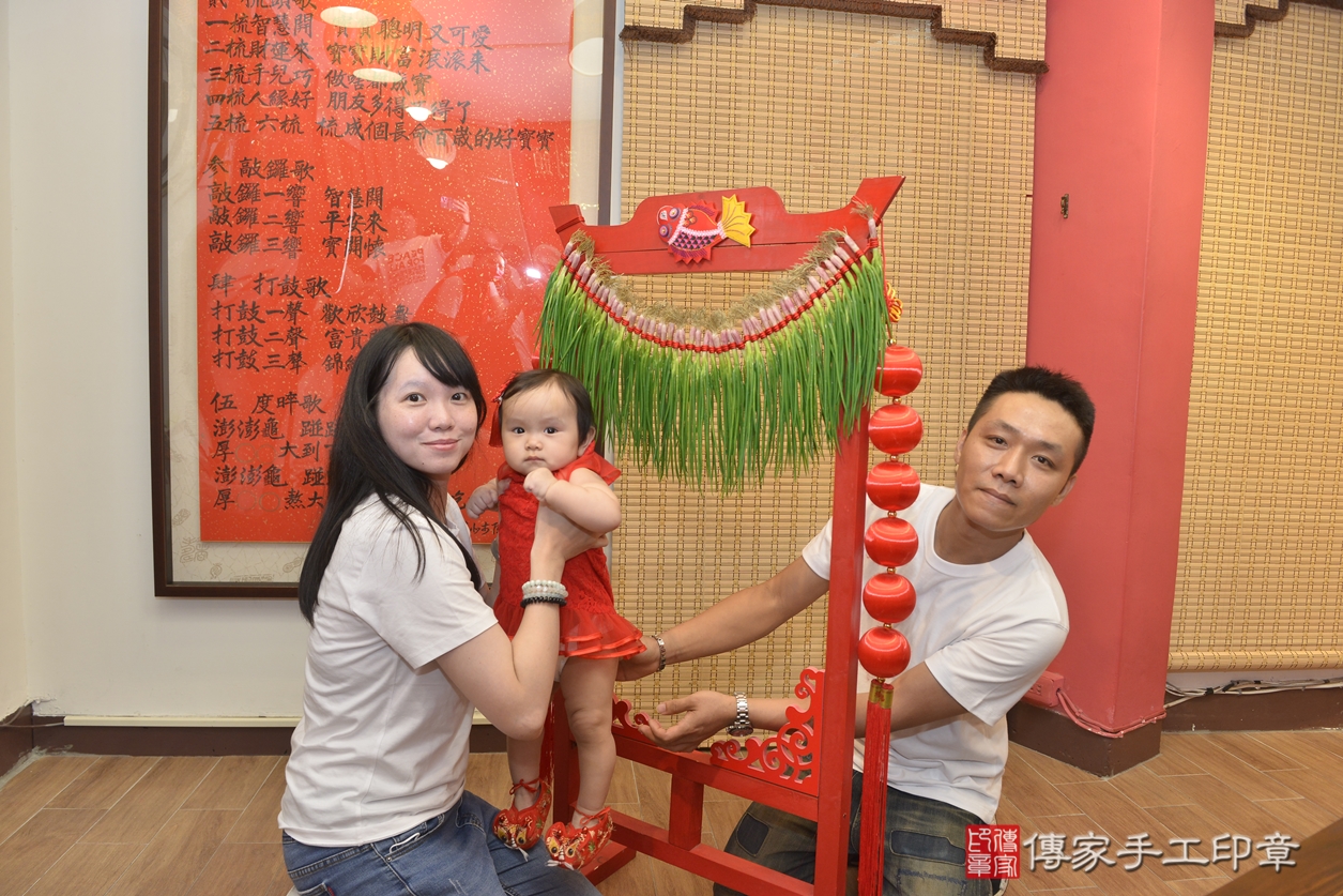 永和區賴寶寶抓周儀式【度晬歌、(腳踩紅龜糕)】朗誦祝福:古禮祝福寶寶健康平安長大。腳踩紅龜糕的儀式,是台灣古禮抓周的重要儀式之一。新北店抓周。