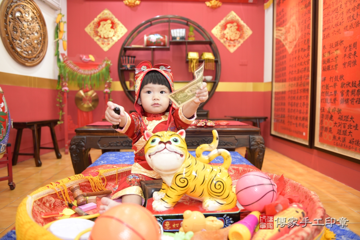 桃園市八德區楊寶寶抓周推薦:傳家桃園店抓周度脺中國風會場,嬰兒古禮抓周流程儀式吉祥話、抓周道具物品24種、拍照。抓周證書。2021.11.17