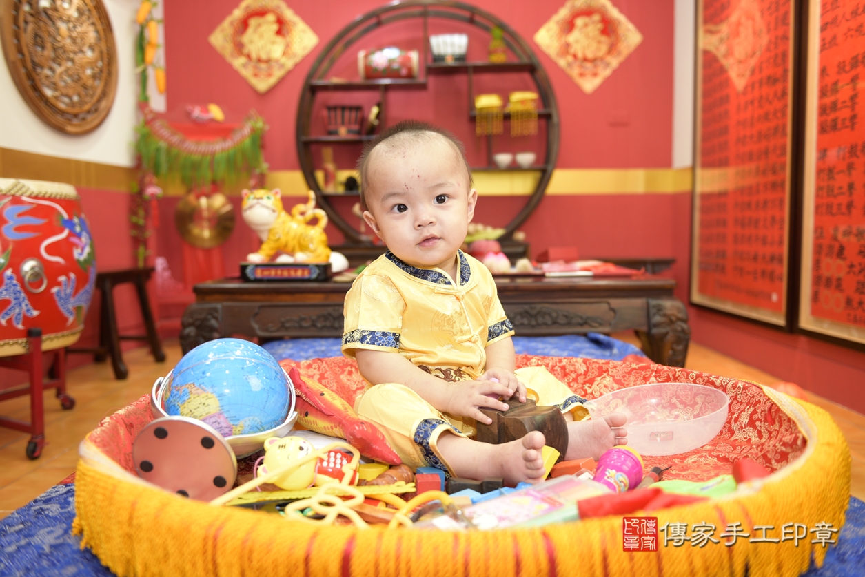 桃園市八德區劉寶寶抓周推薦:傳家桃園店抓周度脺中國風會場,嬰兒古禮抓周流程儀式吉祥話、抓周道具物品24種、拍照。抓周證書。2021.09.19