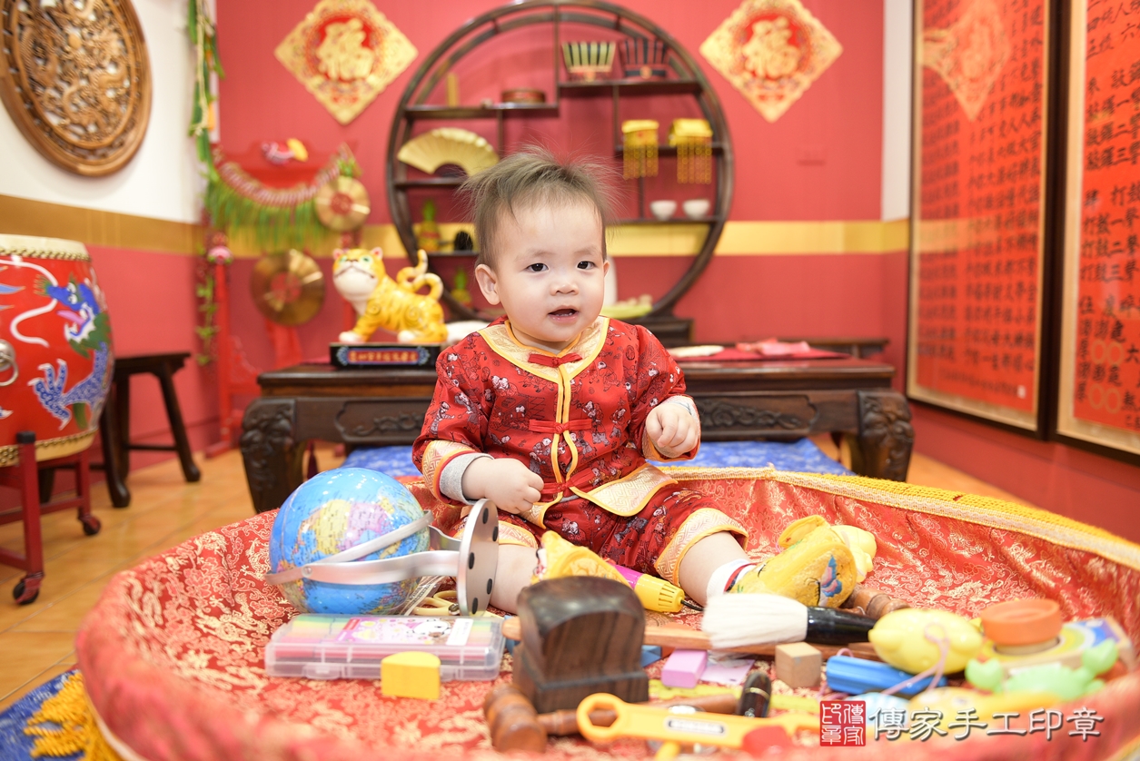 桃園市八德區蕭寶寶抓周推薦:傳家桃園店抓周度脺中國風會場,嬰兒古禮抓周流程儀式吉祥話、抓周道具物品24種、拍照。抓周證書。2022.04.20