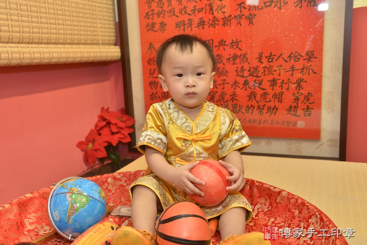 新北市永和區張寶寶抓周推薦:傳家新北店抓周度脺中國風會場,嬰兒古禮抓周流程儀式吉祥話、抓周道具物品24種、拍照。抓周證書。2022.12.01