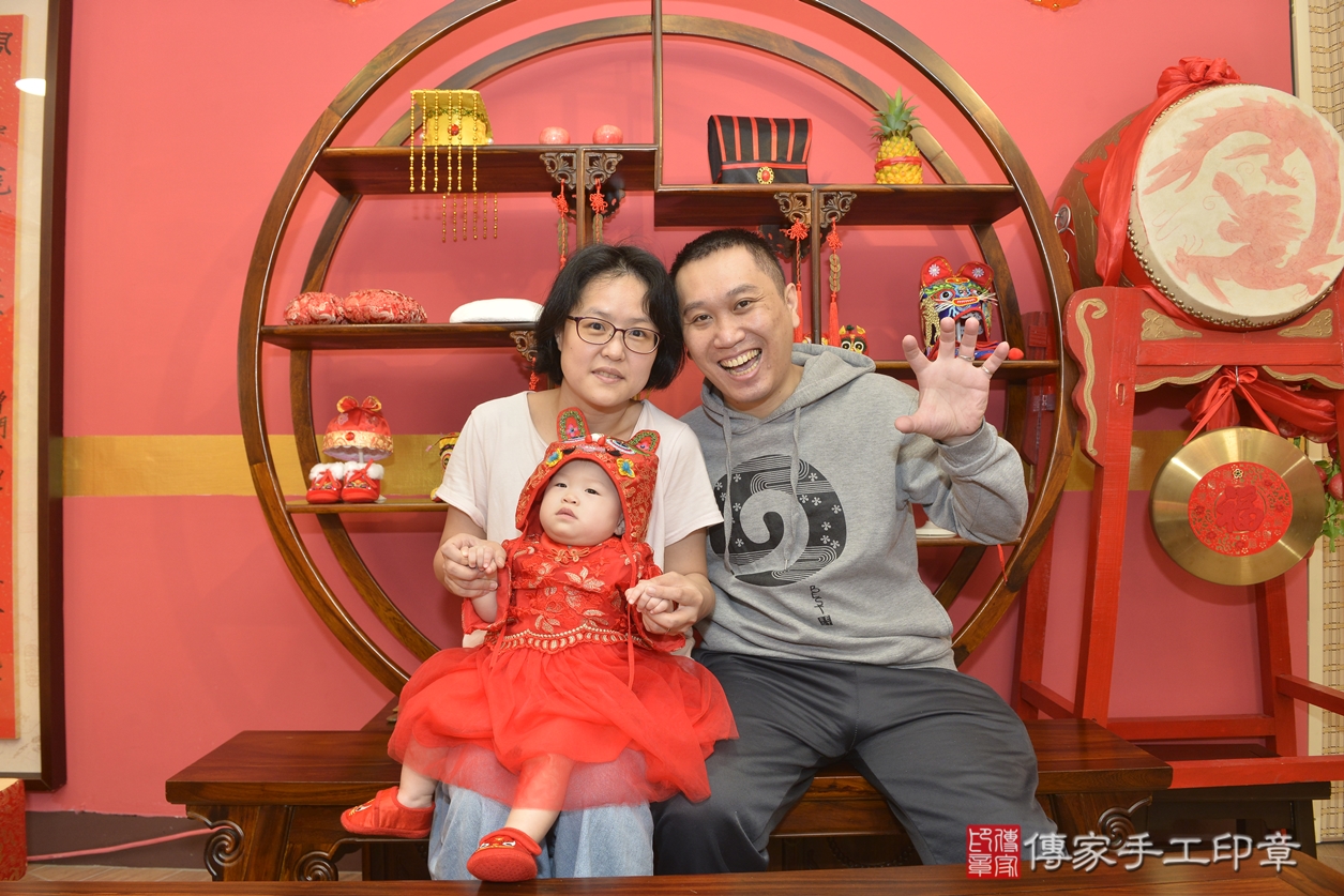 新北市永和區郭寶寶抓周推薦:傳家新北店抓周度脺中國風會場,嬰兒古禮抓周流程儀式吉祥話、抓周道具物品24種、拍照。抓周證書。2022.12.02