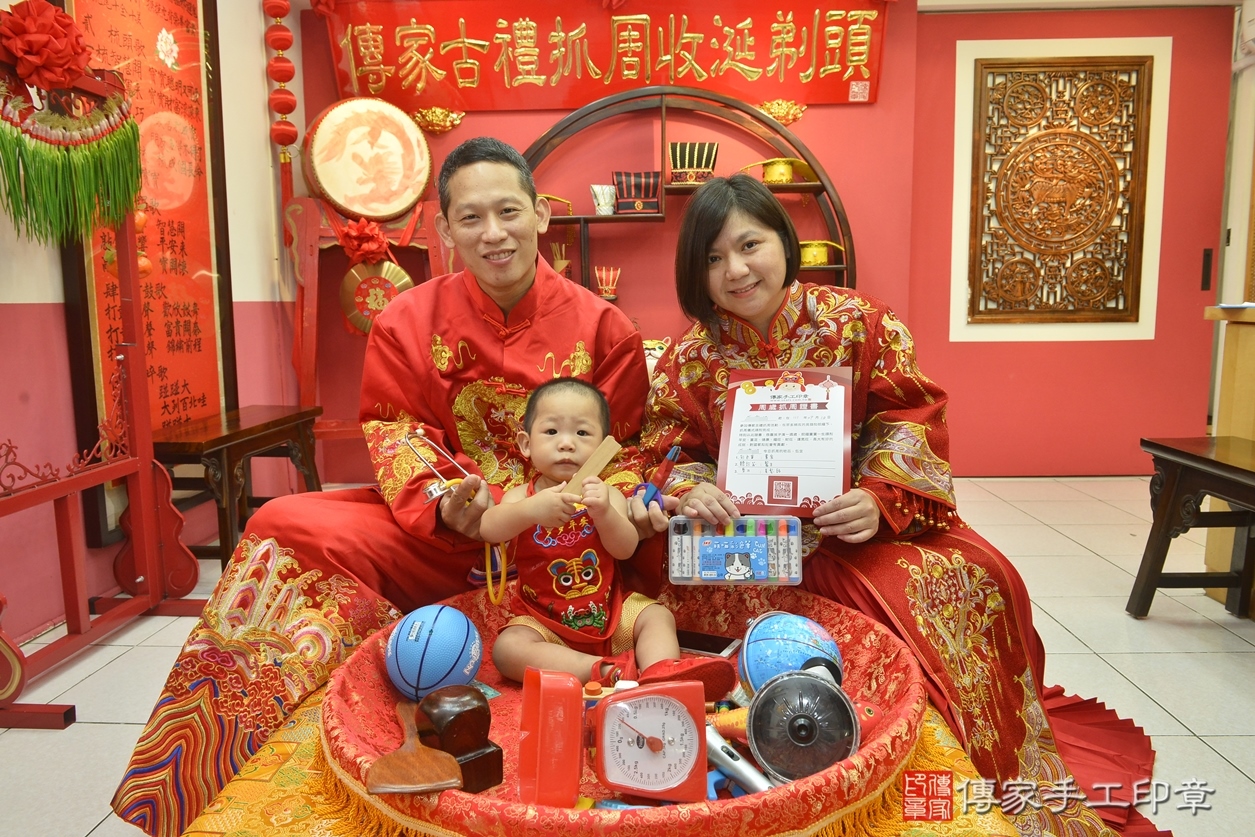 台中市北區莊寶寶抓周推薦:傳家台中店抓周度脺中國風會場,嬰兒古禮抓周流程儀式吉祥話、抓周道具物品24種、拍照。抓周證書。2022.12.21