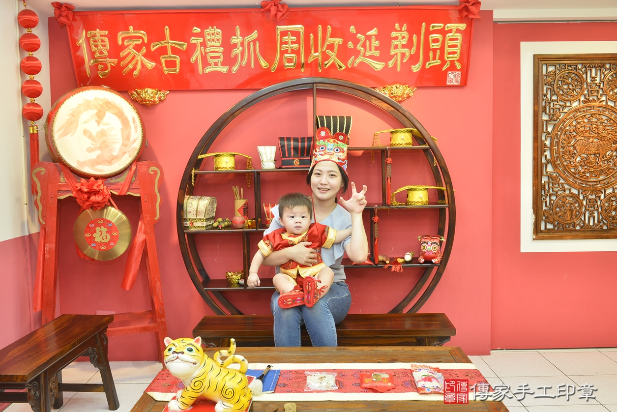 台中市北區顧寶寶抓周推薦:傳家台中店抓周度脺中國風會場,嬰兒古禮抓周流程儀式吉祥話、抓周道具物品24種、拍照。抓周證書。2022.12.22