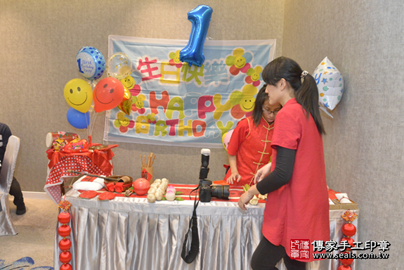 中壢區呂寶寶抓周儀式【度晬歌、(腳踩紅龜糕)】朗誦祝福:古禮祝福寶寶健康平安長大。腳踩紅龜糕的儀式,是台灣古禮抓周的重要儀式之一。新北店抓周。