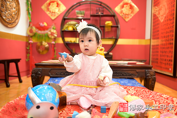 桃園市八德區陳寶寶抓周推薦:傳家桃園店抓周度脺中國風會場,嬰兒古禮抓周流程儀式吉祥話、抓周道具物品24種、拍照。抓周證書。2023.03.18
