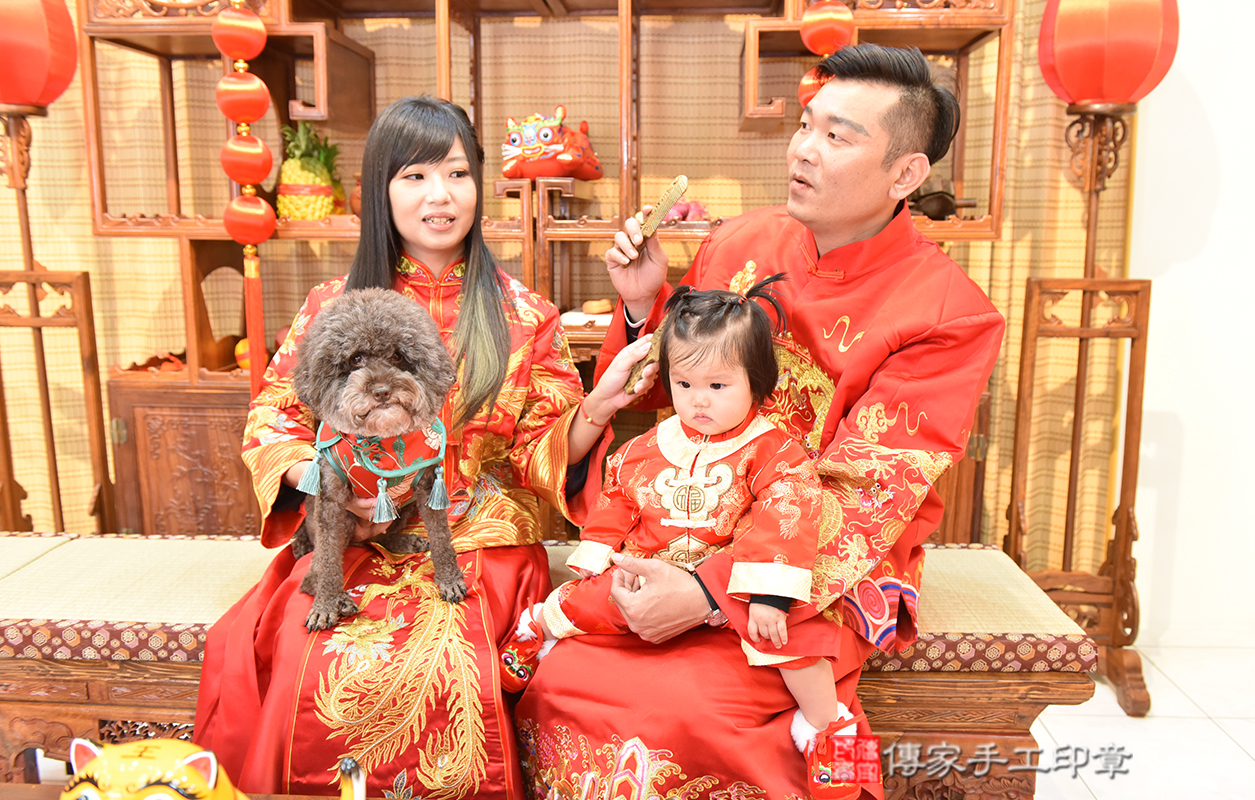 台南市永康區郭寶寶抓周推薦:傳家台南店抓周度脺中國風會場,嬰兒古禮抓周流程儀式吉祥話、抓周道具物品24種、拍照。抓周證書。2023.2.3