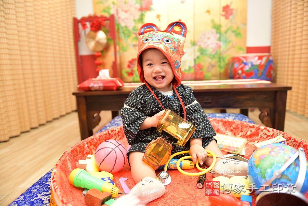 台北市大同區黃寶寶抓周推薦:傳家台北店抓周度脺中國風會場,嬰兒古禮抓周流程儀式吉祥話、抓周道具物品24種、拍照。抓周證書。2022.10.14