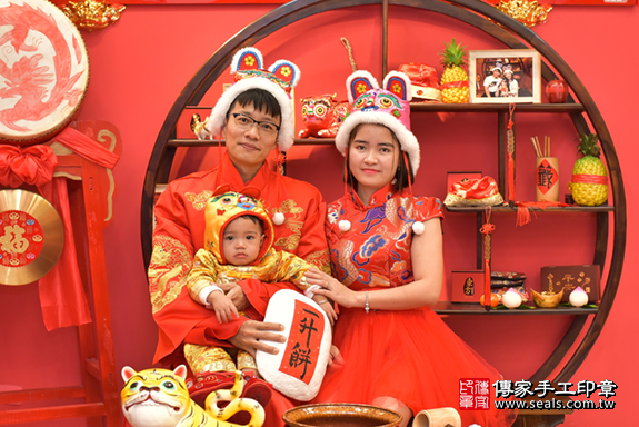 台中市北區吳寶寶抓周推薦:傳家台中店抓周度脺中國風會場,專業嬰兒古禮抓周流程儀式吉祥話、抓周道具物品24種、攝影拍照。爸媽寶貝三人穿古裝禮服「日式、中式、韓式。款式200套」抓周證書,DVD光碟。2019.12.29