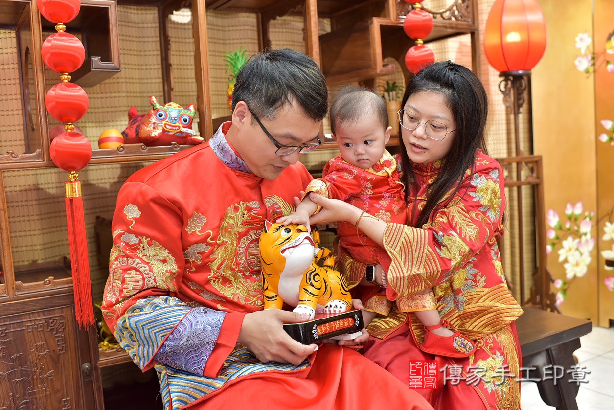 台南市永康區莊寶寶抓周推薦:傳家台南店抓周度脺中國風會場,嬰兒古禮抓周流程儀式吉祥話、抓周道具物品24種、拍照。抓周證書。2023.7.8