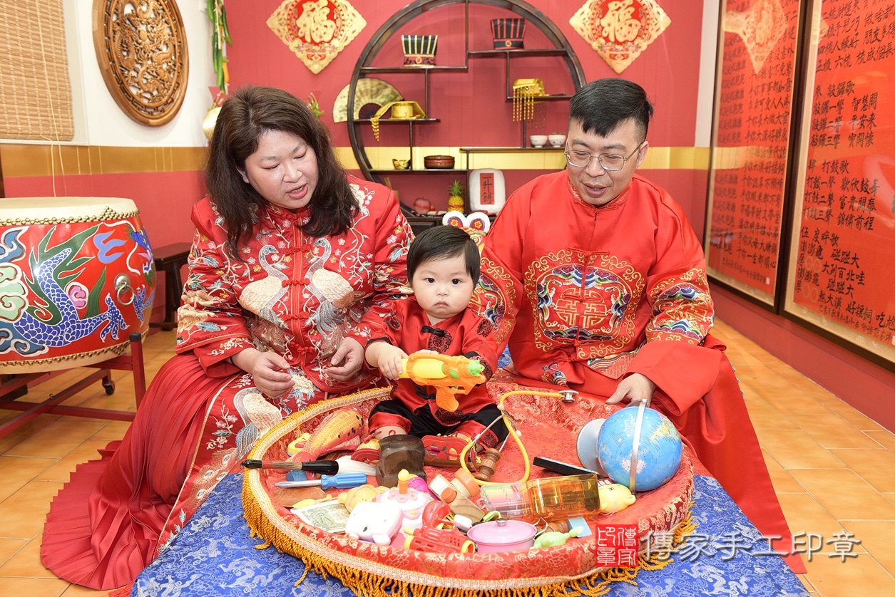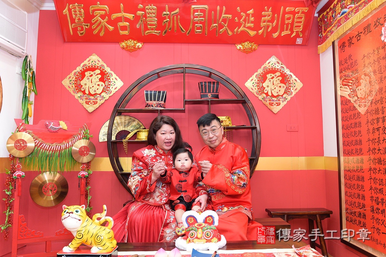桃園市八德區林寶寶抓周推薦:傳家桃園店抓周度脺中國風會場,嬰兒古禮抓周流程儀式吉祥話、抓周道具物品24種、拍照。抓周證書。2023.2.7