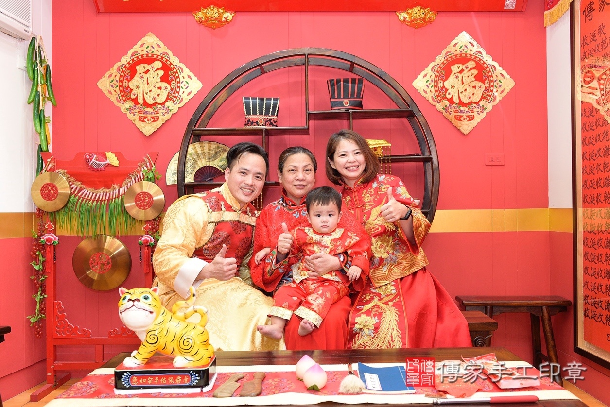 桃園市八德區劉寶寶抓周推薦:傳家桃園店抓周度脺中國風會場,嬰兒古禮抓周流程儀式吉祥話、抓周道具物品24種、拍照。抓周證書。2023.1.2