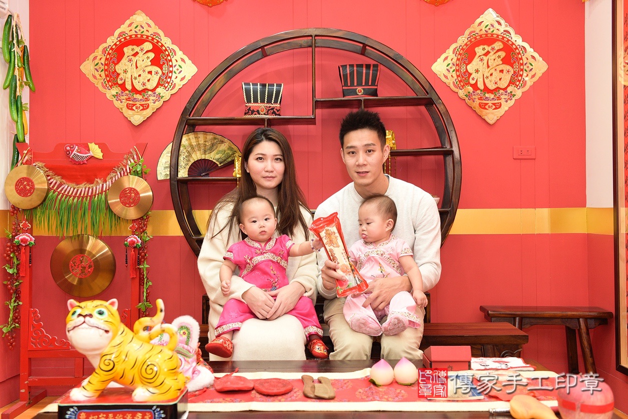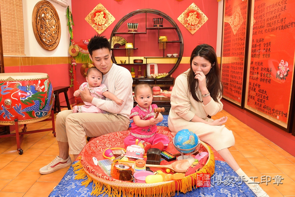 傳家抓周儀式桃園市八德區鍾寶寶(雙胞胎):週歲祝福禮儀吉祥話。