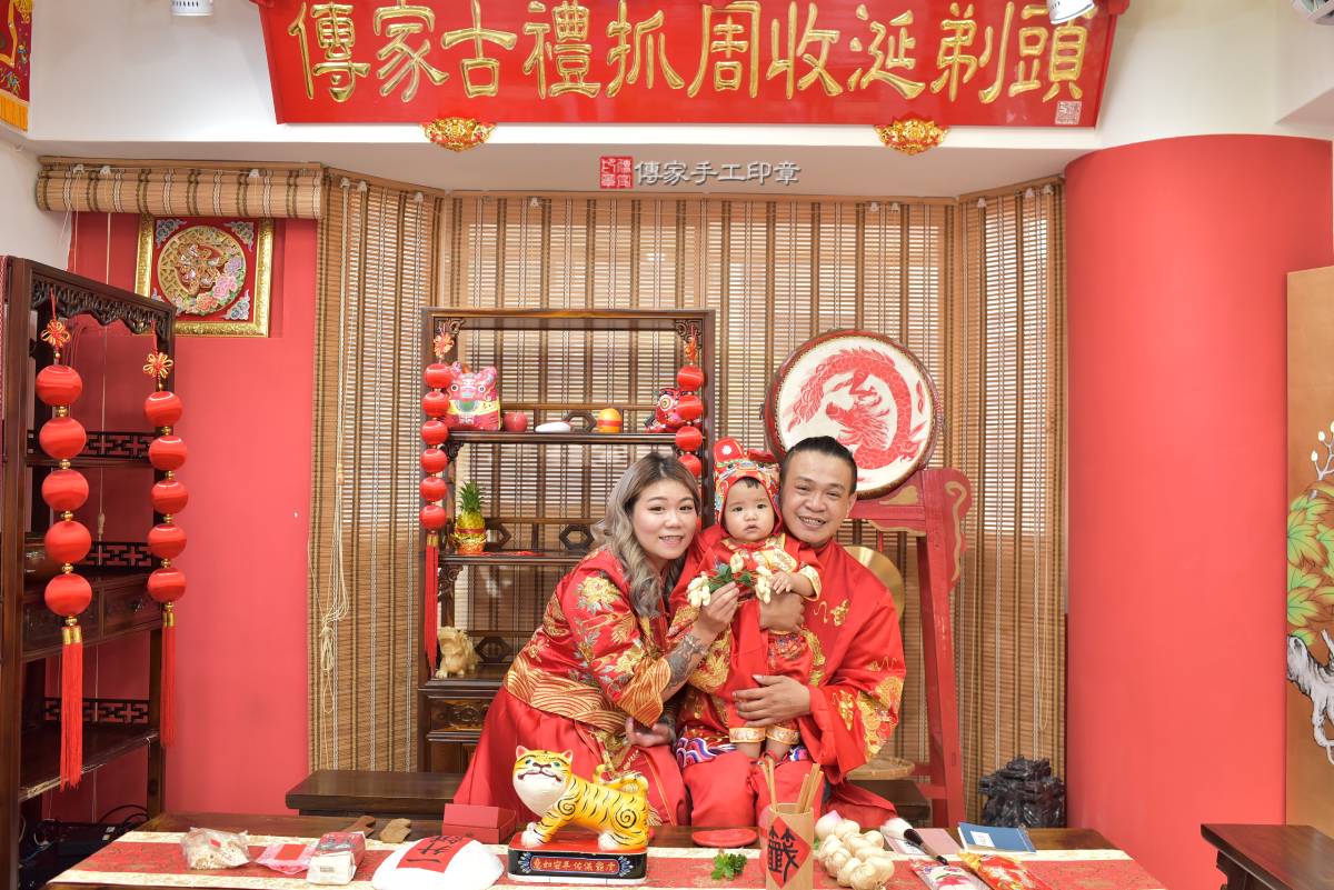 高雄市鳳山區陳寶寶抓周推薦:傳家高雄店抓周度脺中國風會場,嬰兒古禮抓周流程儀式吉祥話、抓周道具物品24種、拍照。抓周證書。2023.07.18