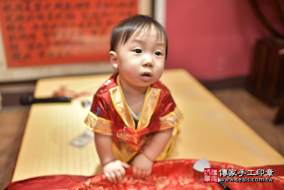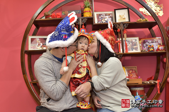 新北市永和區許寶寶抓周推薦:傳家新北店抓周度脺中國風會場,專業嬰兒古禮抓周流程儀式吉祥話、抓周道具物品24種、攝影拍照。爸媽寶貝三人穿古裝禮服「日式、中式、韓式。款式200套」抓周證書,DVD光碟。2020.02.28