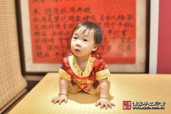新北市永和區許寶寶古禮抓周【穿抓周虎衣、帶抓周虎帽、穿抓周虎鞋】:滿週歲趨吉避凶的吉祥衣服穿戴。新北店抓周。