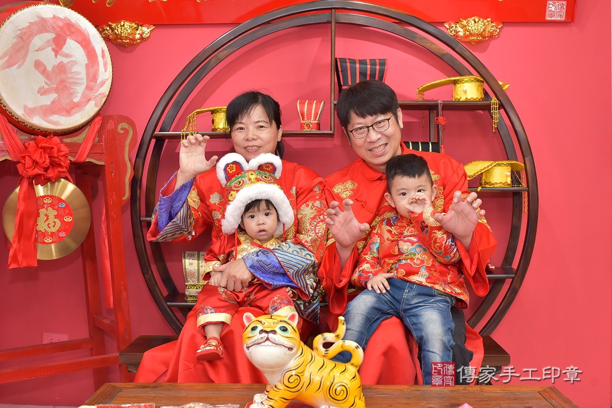 台中市北區賴寶寶抓周推薦:傳家台中店抓周度脺中國風會場,嬰兒古禮抓周流程儀式吉祥話、抓周道具物品24種、拍照。抓周證書。2023.7.16
