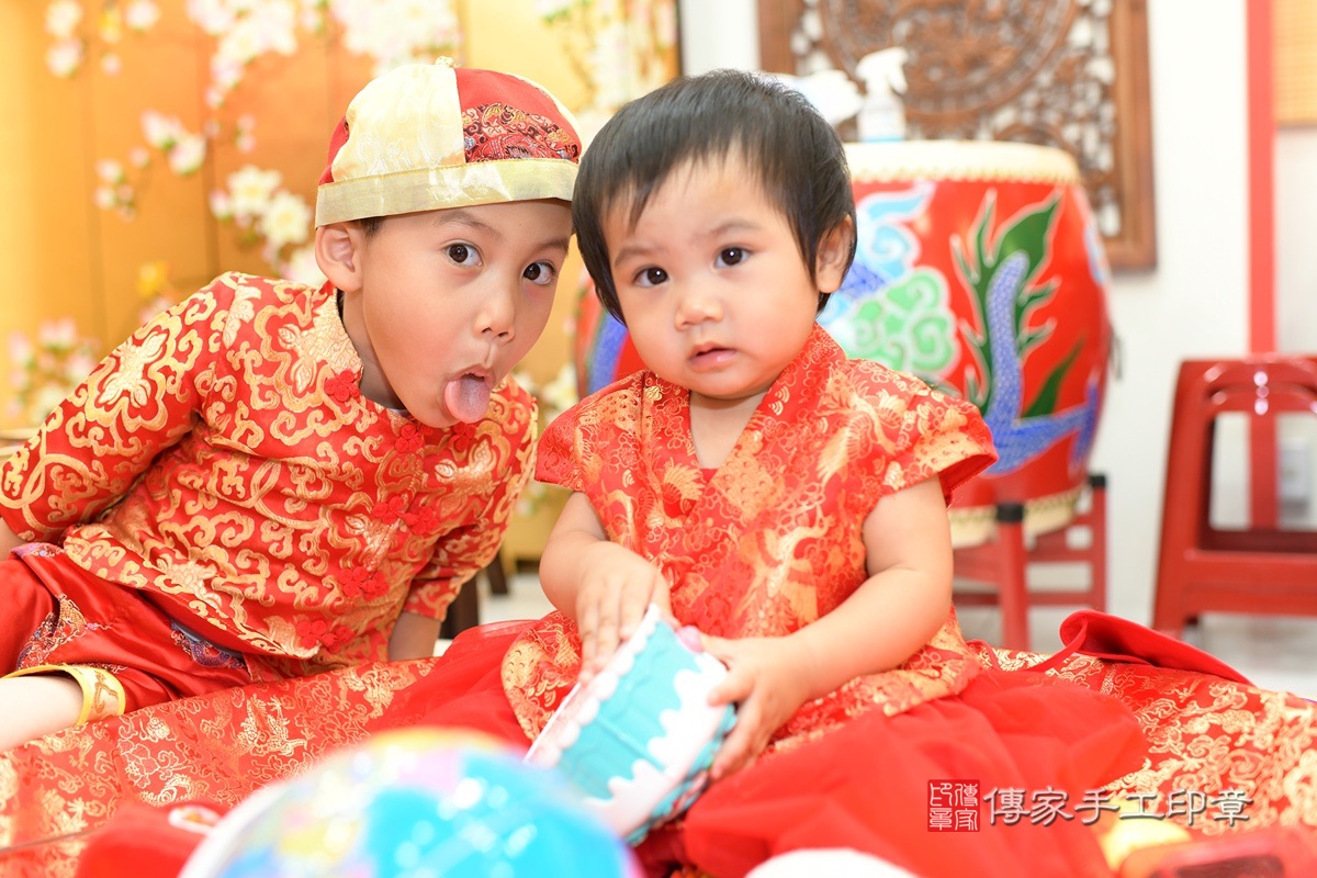 台南市永康區黃寶寶抓周推薦:傳家台南店抓周度脺中國風會場,嬰兒古禮抓周流程儀式吉祥話、抓周道具物品24種、拍照。抓周證書。2023.8.19
