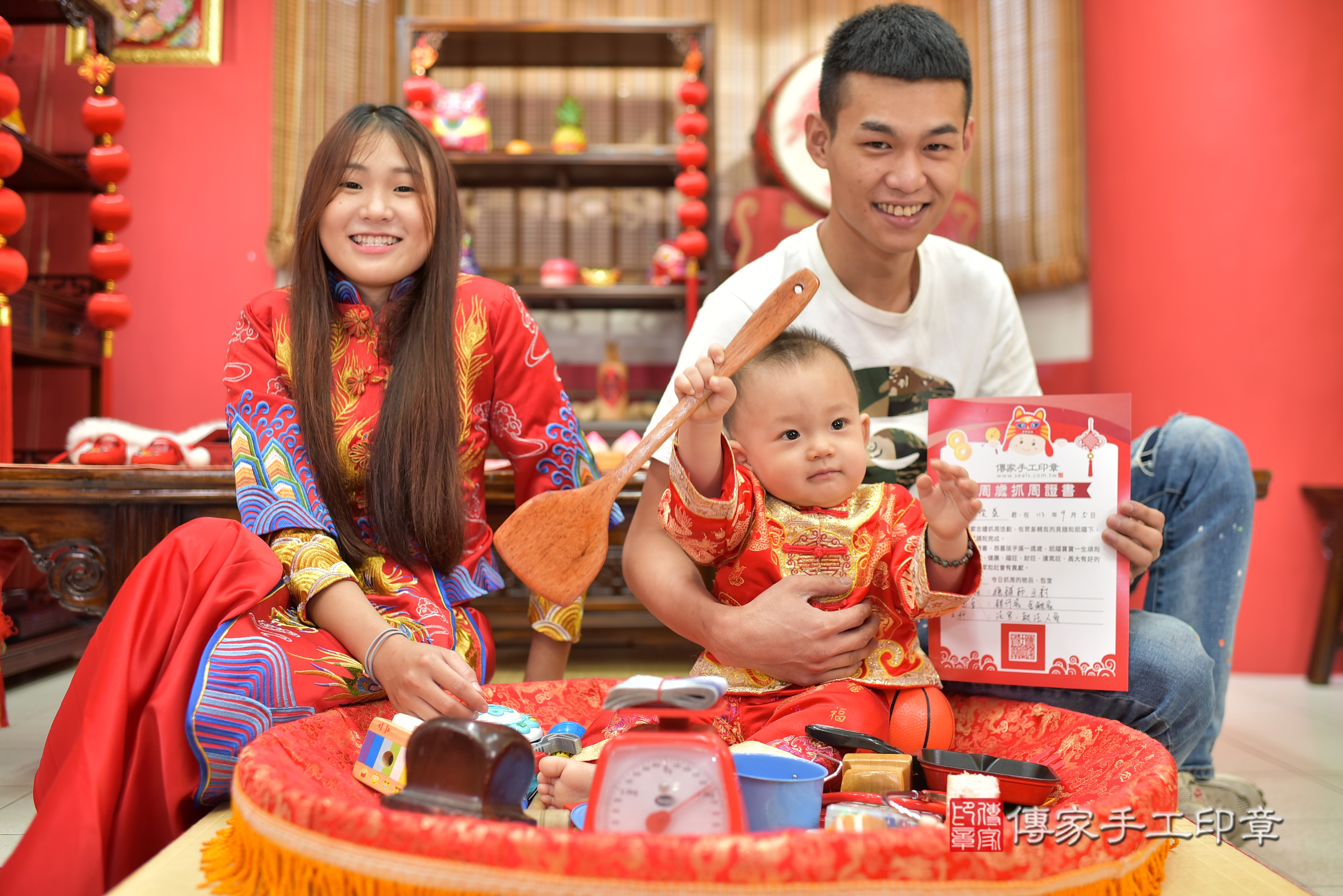 高雄市鳳山區劉寶寶抓周推薦:傳家高雄店抓周度脺中國風會場,嬰兒古禮抓周流程儀式吉祥話、抓周道具物品24種、拍照。抓周證書。2023.09.05