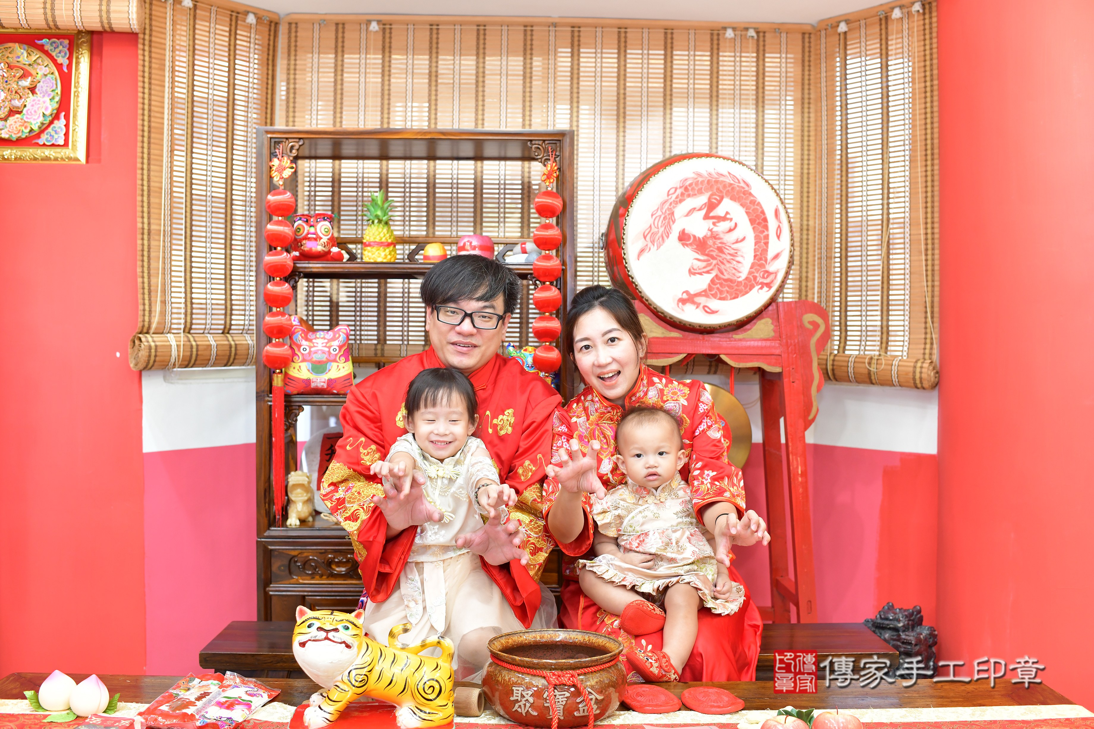 在中國和台灣,虎爺是兒童的守護神,週歲有虎爺保佑,可以象徵吉祥平安。高雄店抓周。爸爸媽媽和虎爺一起拍個合照,保佑孩子平安健康長大喔^^