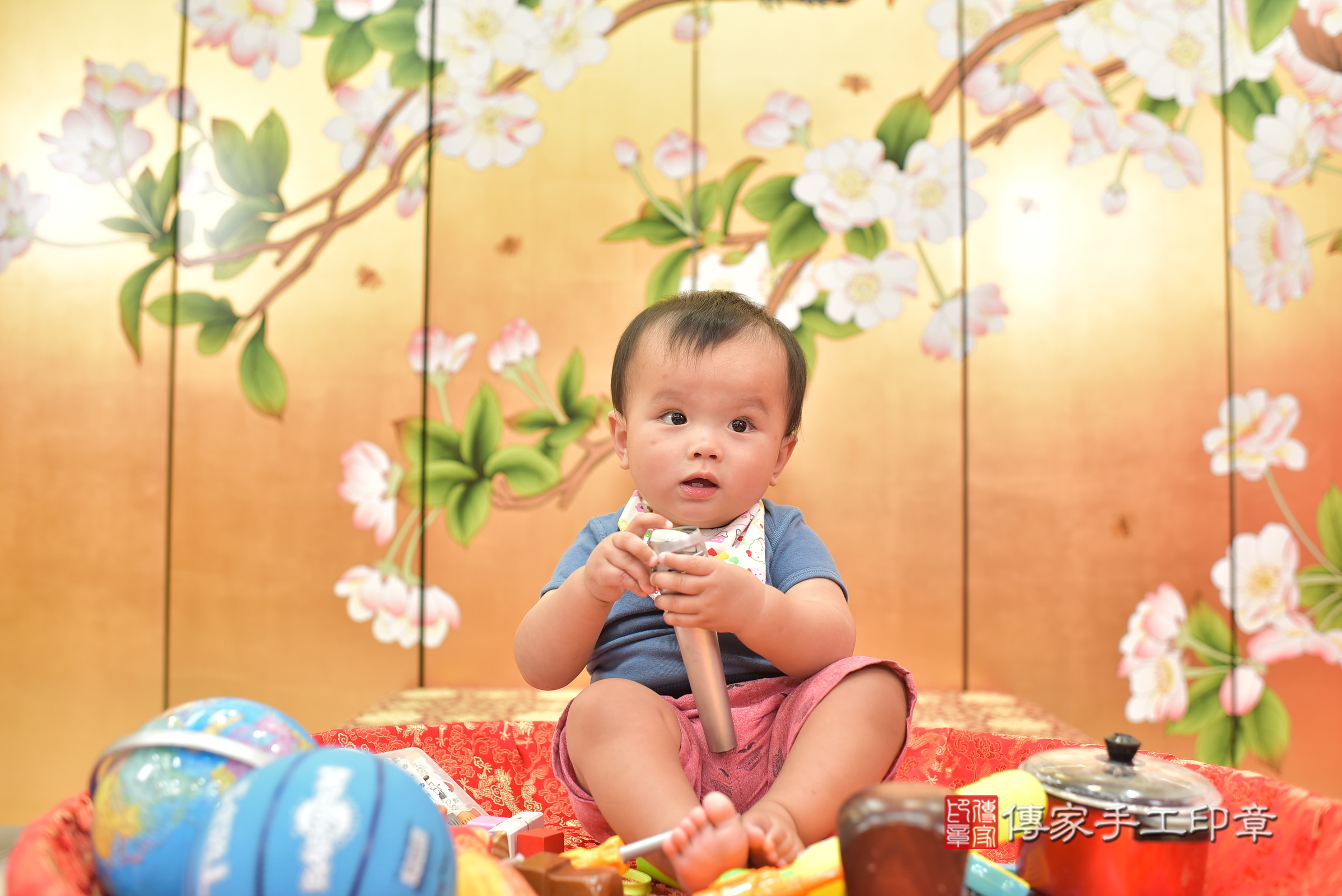 台中市北區林寶寶抓周推薦:傳家台中店抓周度脺中國風會場,嬰兒古禮抓周流程儀式吉祥話、抓周道具物品24種、拍照。抓周證書。2023.9.28