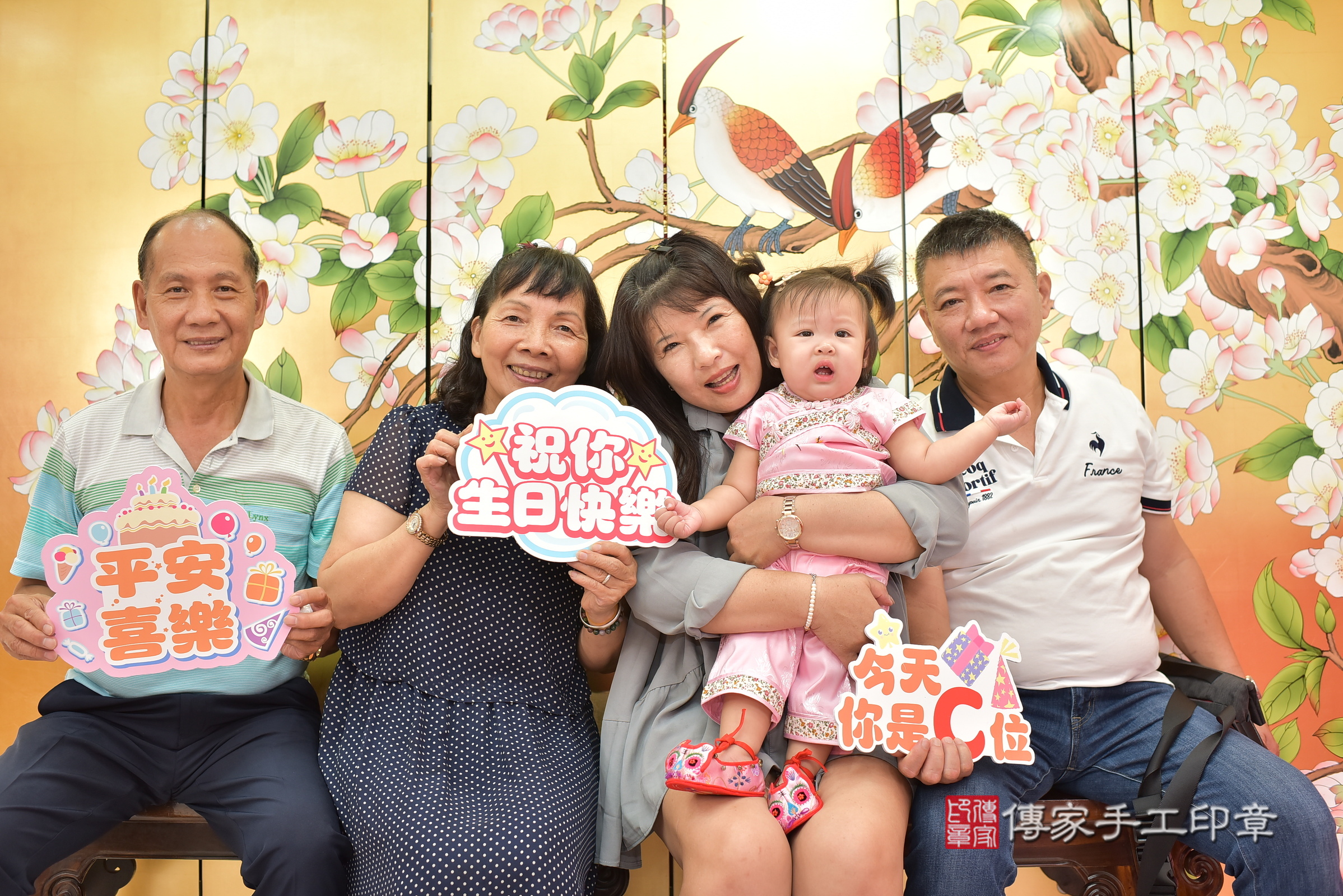 台中市北區戴寶寶抓周全家福大合照。