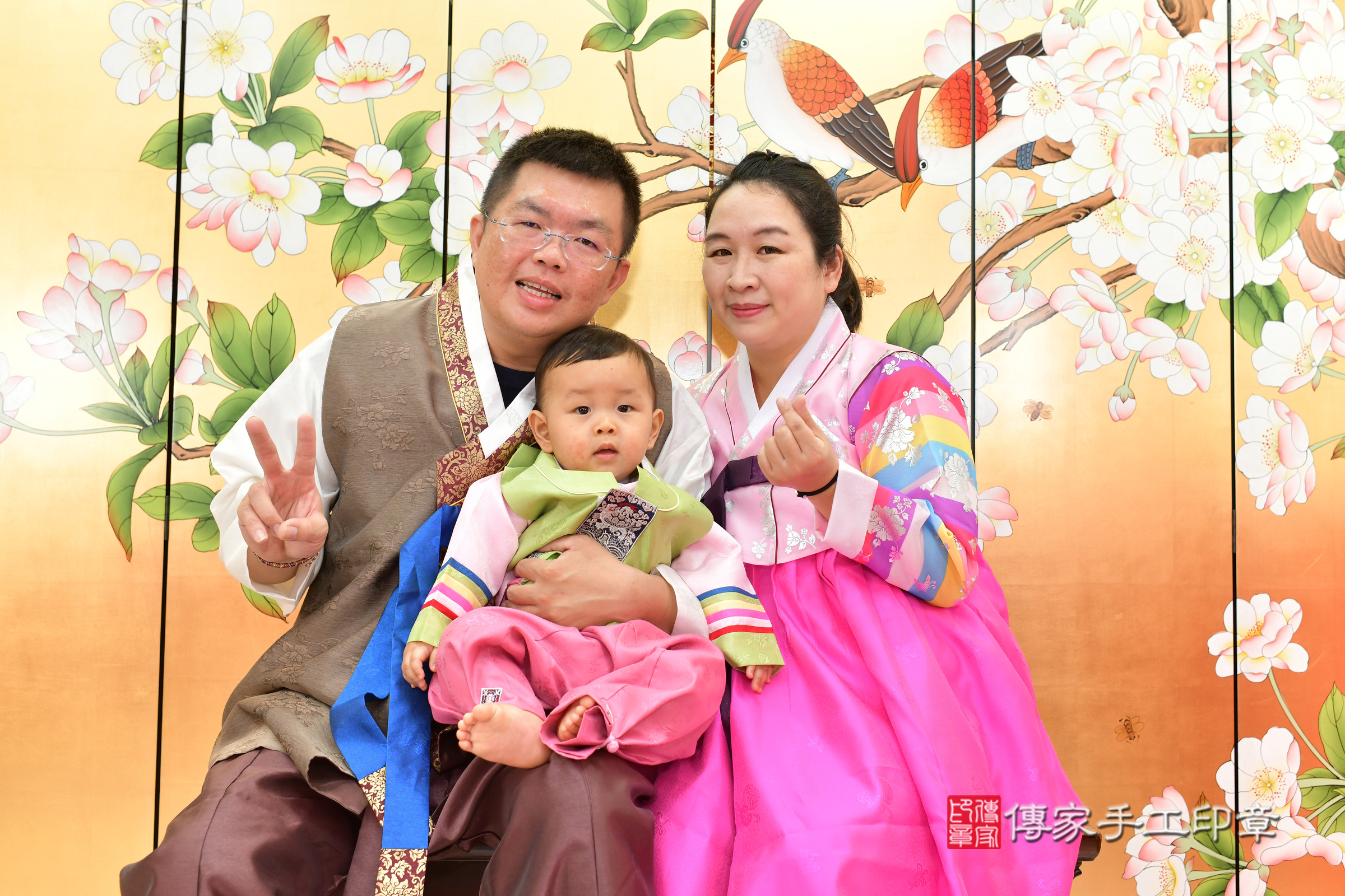 幸福的一家人在這個好日子完成了這場傳統的抓周儀式,
