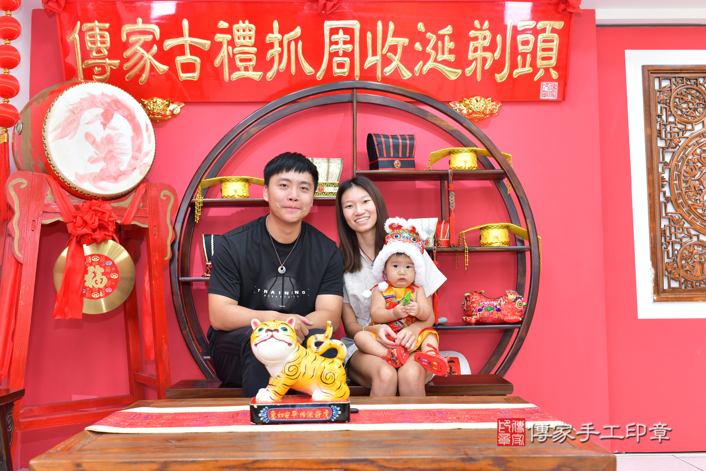 台中市北區林寶寶抓周推薦:傳家台中店抓周度脺中國風會場,嬰兒古禮抓周流程儀式吉祥話、抓周道具物品24種、拍照。抓周證書。2023.11.14