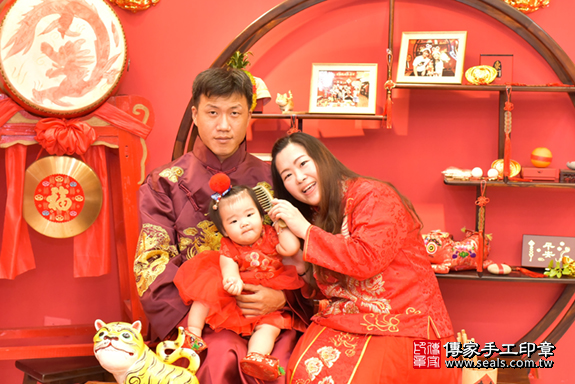 台中市北區陳寶寶抓周推薦:傳家台中店抓周度脺中國風會場,專業嬰兒古禮抓周流程儀式吉祥話、抓周道具物品24種、攝影拍照。爸媽寶貝三人穿古裝禮服「日式、中式、韓式。款式200套」抓周證書,DVD光碟。2020.03.21