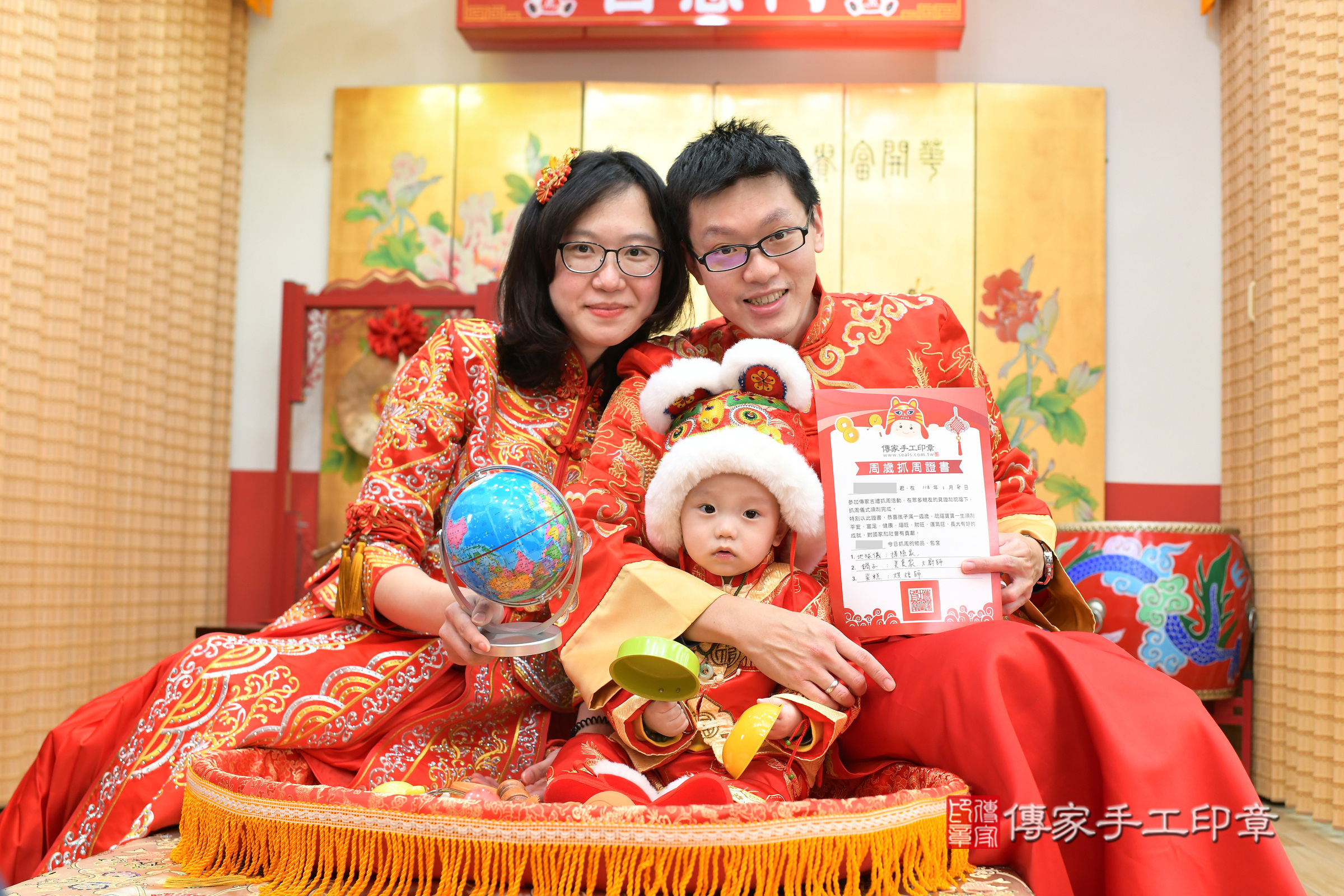 台北市大同區郭寶寶抓周推薦:傳家台北店抓周度脺中國風會場,嬰兒古禮抓周流程儀式吉祥話、抓周道具物品24種、拍照。抓周證書。2024.1.8