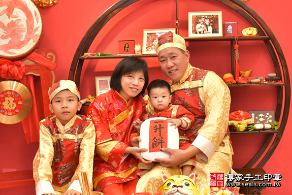 抓周儀式北區董寶寶【踏一升餅】:讓寶寶腳踏實地,步步高昇。