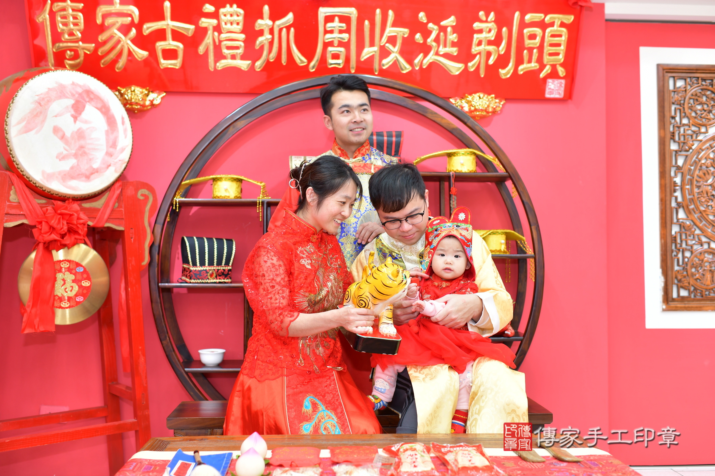 台中市北區潘寶寶抓周推薦:傳家台中店抓周度脺中國風會場,嬰兒古禮抓周流程儀式吉祥話、抓周道具物品24種、拍照。抓周證書。2024.1.13