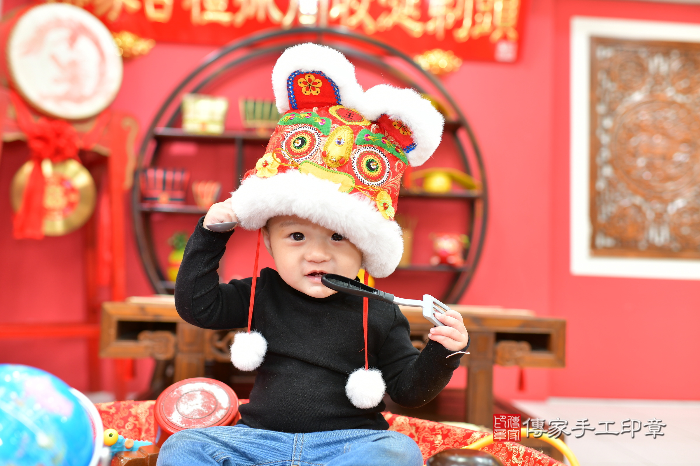 台中市北區詹寶寶抓周推薦:傳家台中店抓周度脺中國風會場,嬰兒古禮抓周流程儀式吉祥話、抓周道具物品24種、拍照。抓周證書。2024.3.7