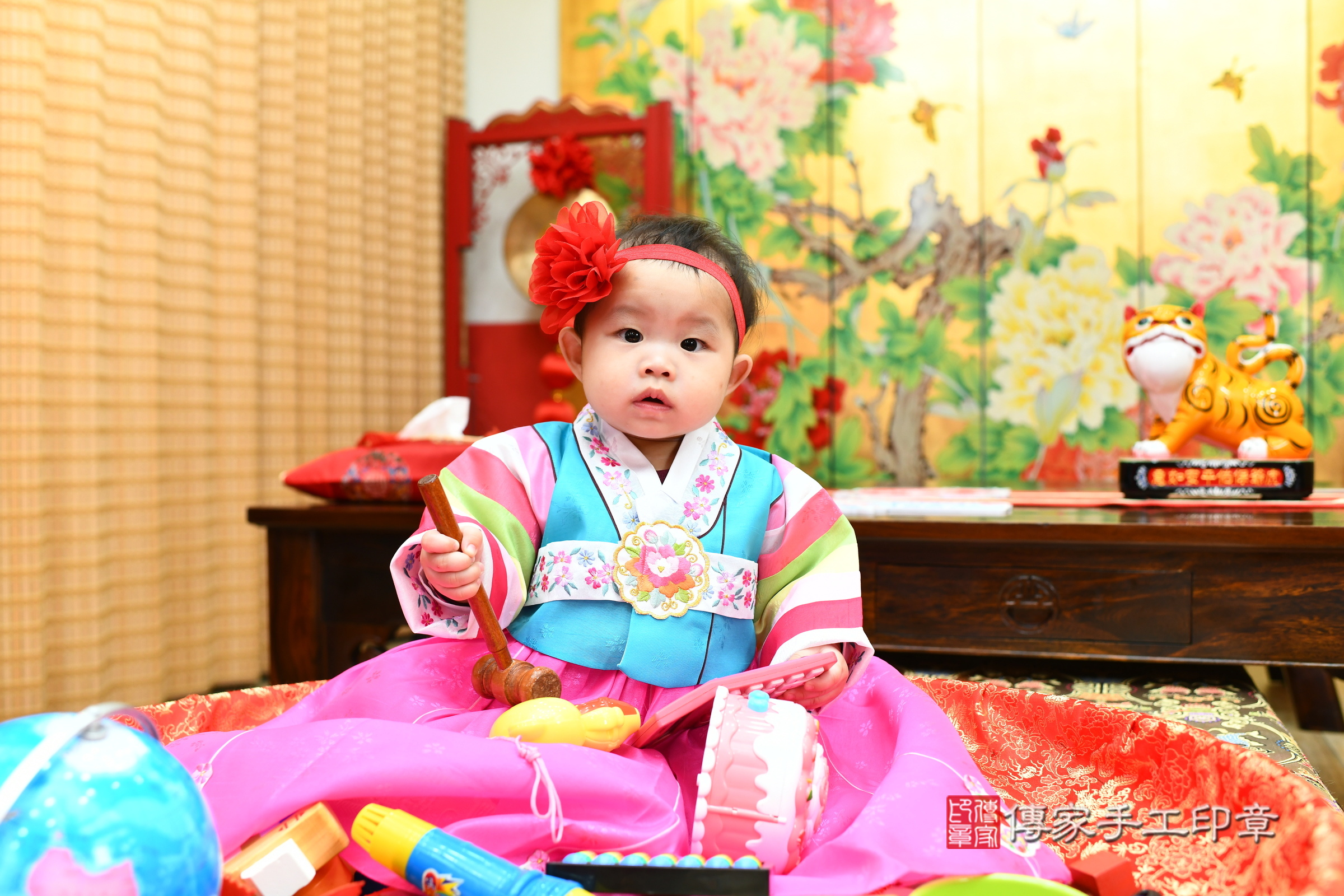 台北市大同區瑄瑄寶寶抓周推薦:傳家台北店抓周度脺中國風會場,嬰兒古禮抓周流程儀式吉祥話、抓周道具物品24種、拍照。抓周證書。2024.3.16