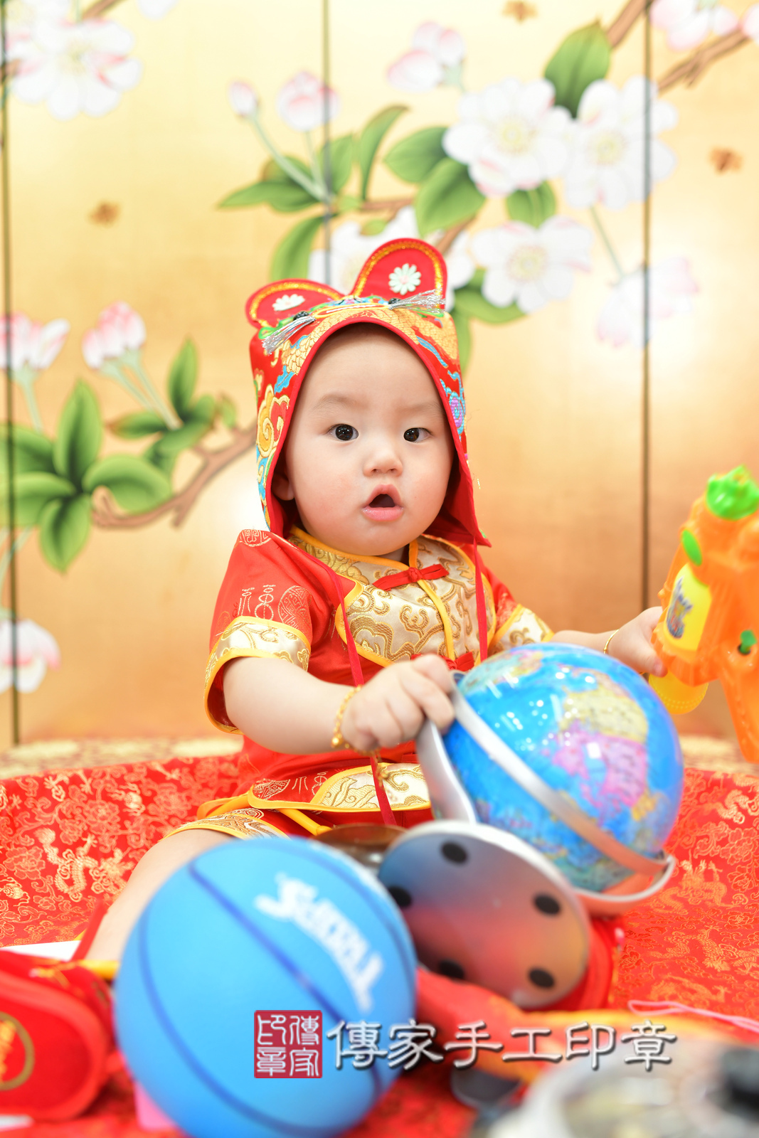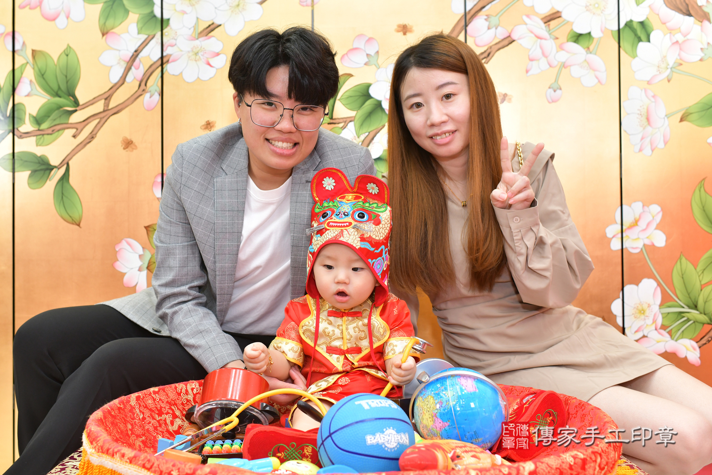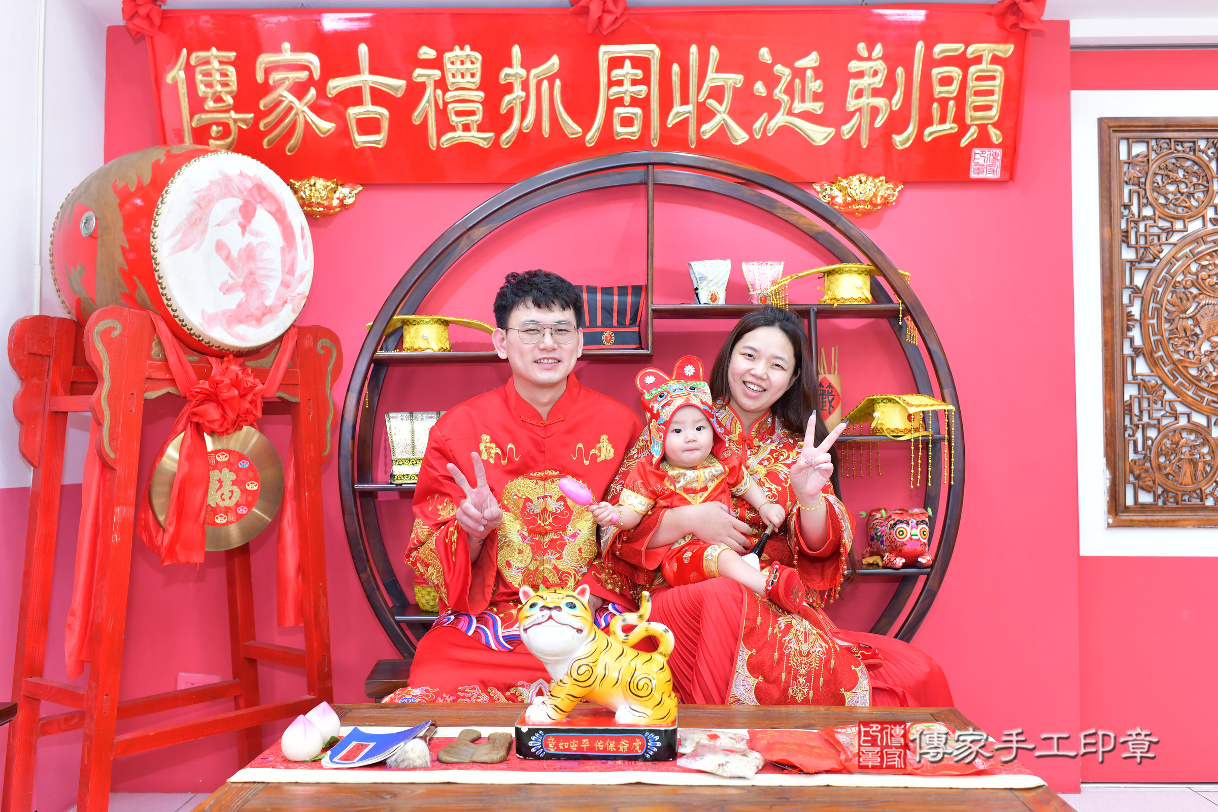 台中市北區小聖寶寶抓周推薦:傳家台中店抓周度脺中國風會場,嬰兒古禮抓周流程儀式吉祥話、抓周道具物品24種、拍照。抓周證書。2024.5.4