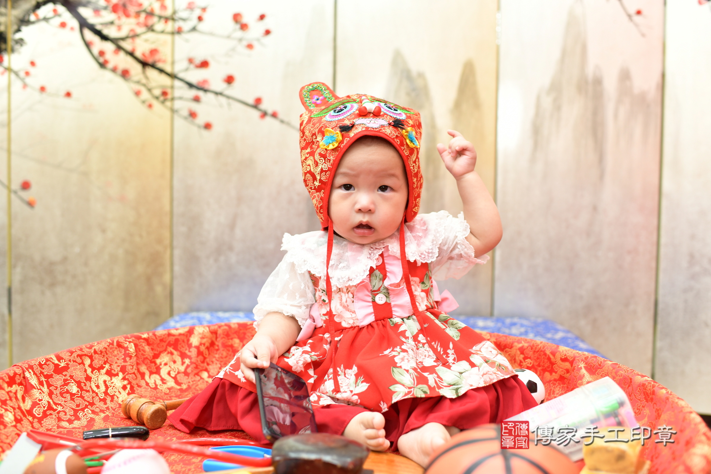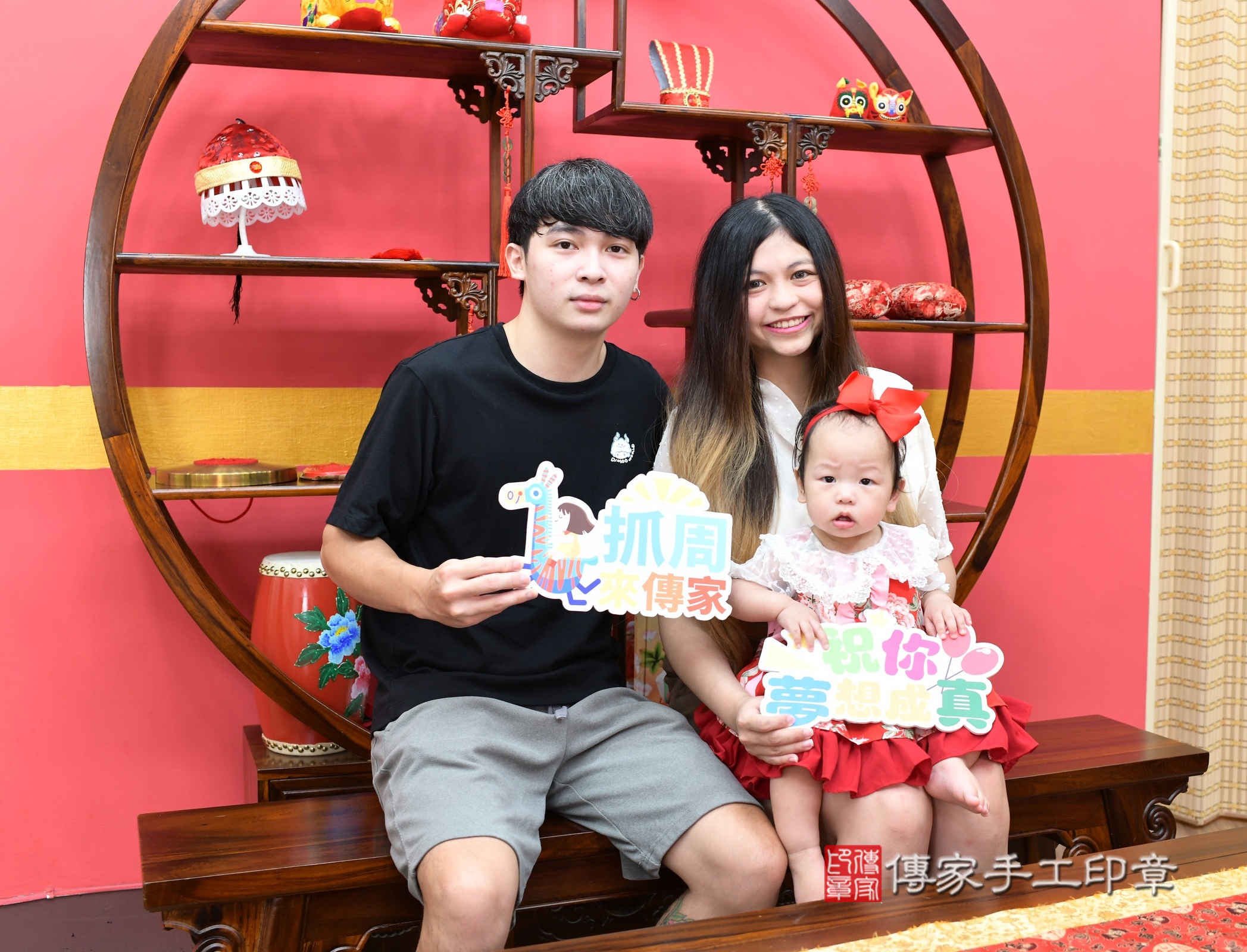 新北市永和區娜娜寶寶抓周推薦:傳家新北店抓周度脺中國風會場,嬰兒古禮抓周流程儀式吉祥話、抓周道具物品24種、拍照。抓周證書。2024.7.2